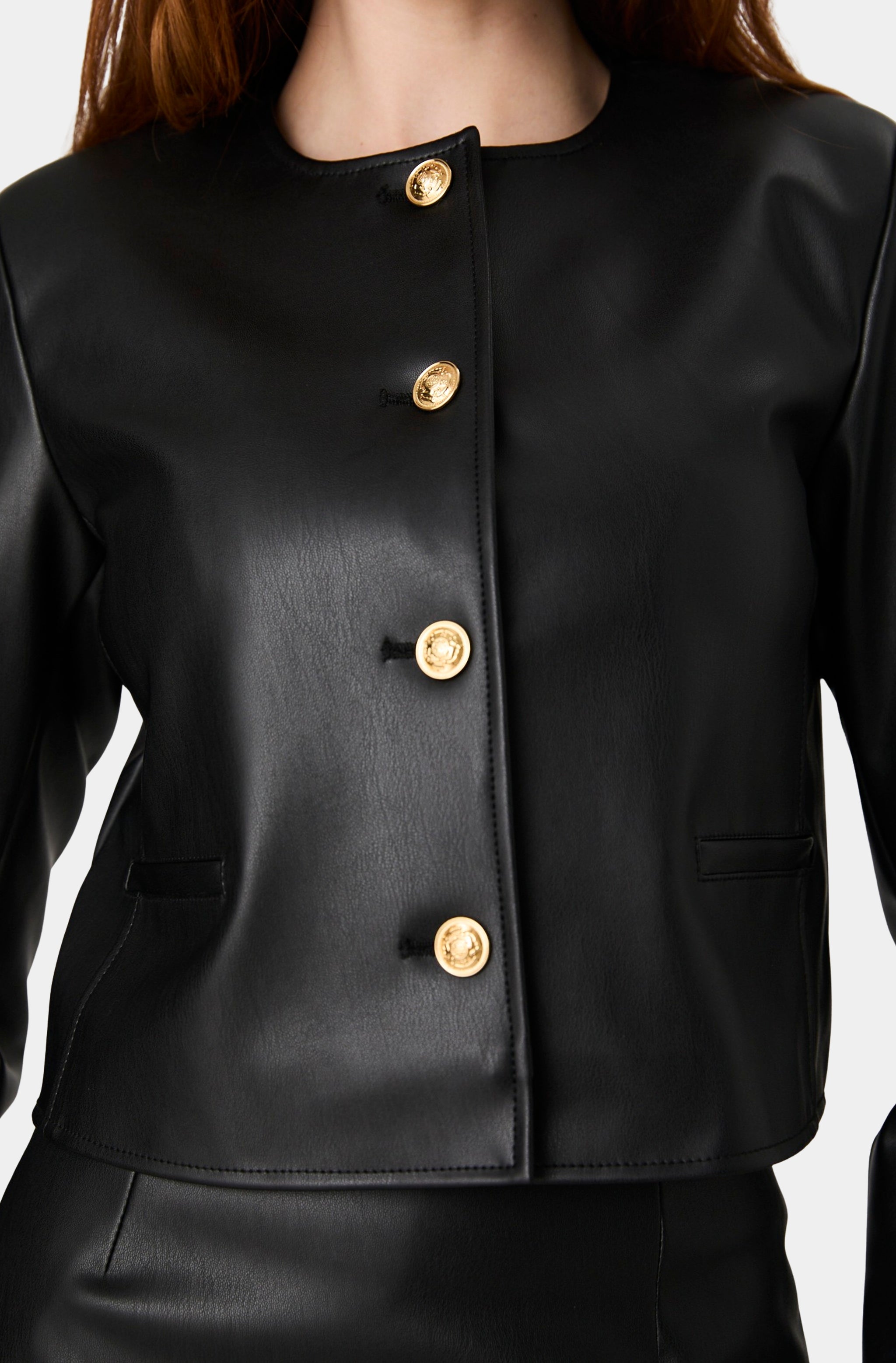 French Connection Dessa Faux Leather Cropped Jacket